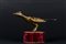 Arte Cinese Scultura in bronzo raffigurante un uccello con tracce di doratura Cina/Tibet, XVIII-XIX secolo . -. Cm 29,50 x 13,50. 6,5 X 13 cm misure supporto