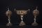Arte Cinese Trittico in filigrana d'argento con incrostazioni di vetri colorati Cina, dinastia Qing, XIX secolo . -. Cm 16,00 x 18,00. Lotto composto da due calici poggianti su base circolare e con coperchio ed una coppa ovale. Da notare la fine e fitta decorazione vegetale a traforo. Calice 21 X 8 cm