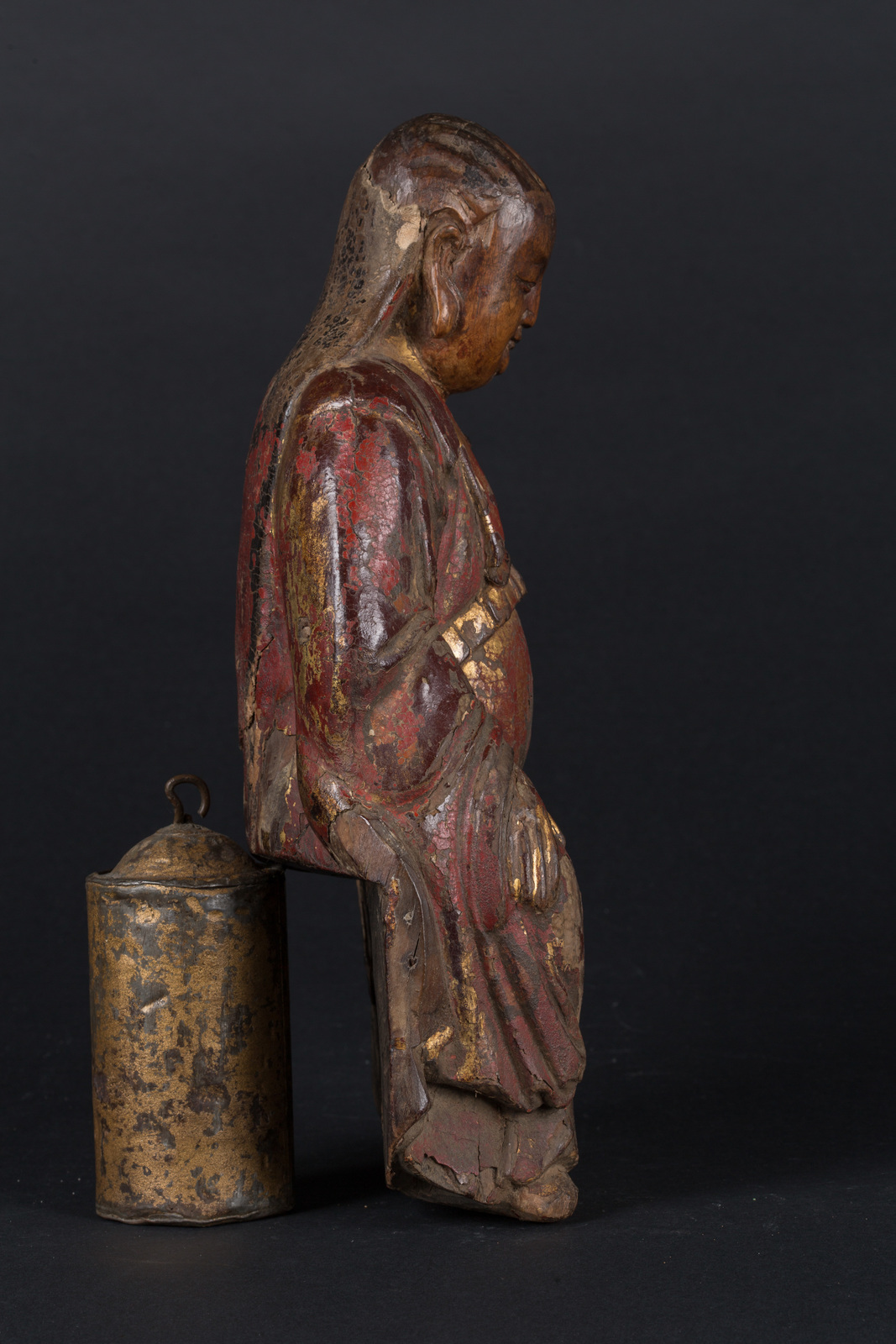 Arte Cinese Scultura in legno laccato raffigurante Zengwu Cina, periodo Ming, XVI secolo . -. Cm 19,00 x 36,00. Presenta tracce di policromia e oro. Sul volto é visibile una superficie particolarmente patinata. Mostra inoltre sul retro un apertura atta ad ospitare eventuali consacrazioni.