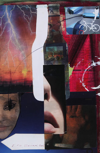 mec-art gest su tela (tecnica mista e collage) cm. 45x30, firma e anno in basso a sinistra, dichiarazione d'autenticità dell'artista su foto.