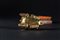 Poggiante su una base lignea rivestita misurante 2 x 7 x 4 cm.