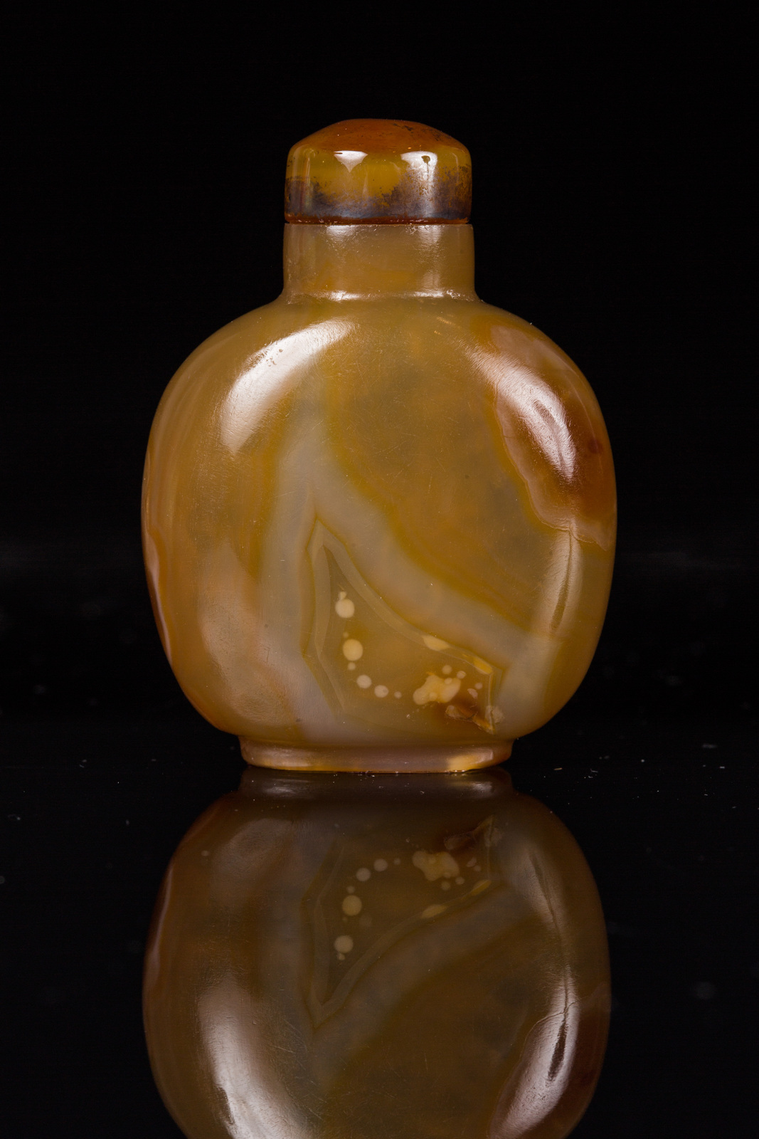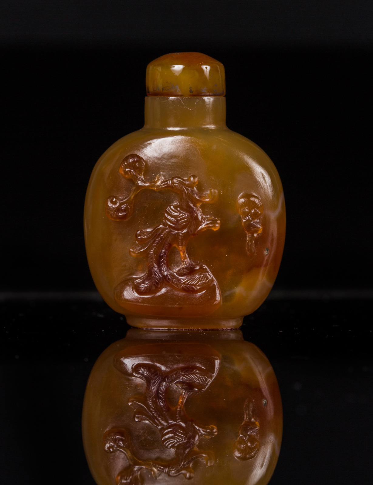 Arte Cinese Tabacchiera in agata intagliata con fenice