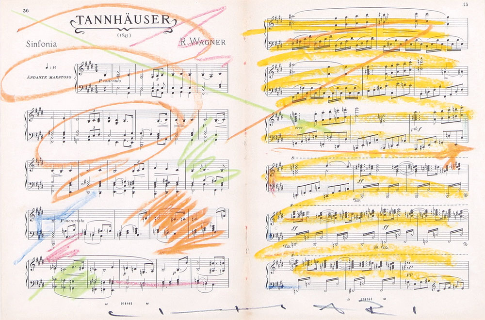 GIUSEPPE CHIARI Firenze 26/09/1926 - Firenze 10/05/2007 Spartito musicale tecnica mista su carta cm. 30x45, firma in basso al centro, dichiarazione d'autenticità dell'artista su foto.