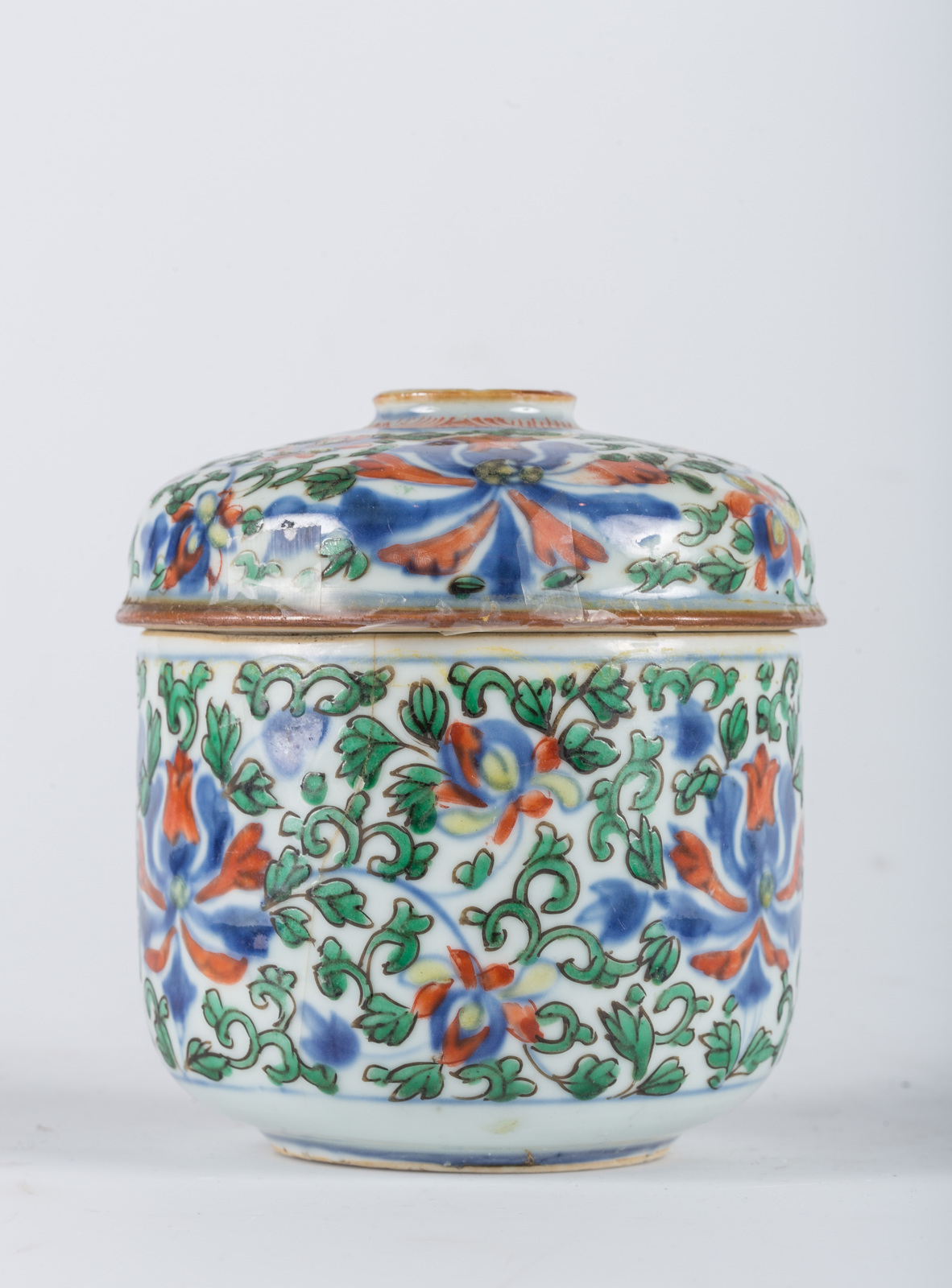 Arte Cinese Scatola con coperchio in porcellana wucai dipinta con fiori e...