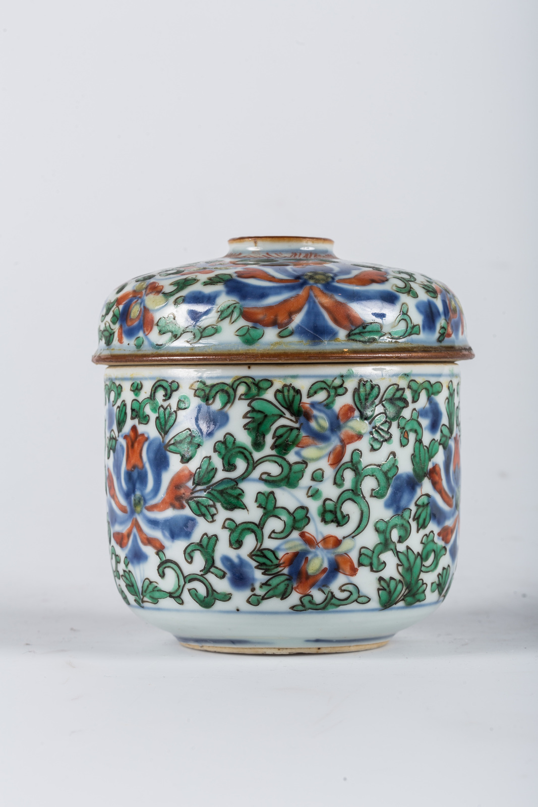 Arte Cinese Scatola con coperchio in porcellana wucai dipinta con fiori e tralci