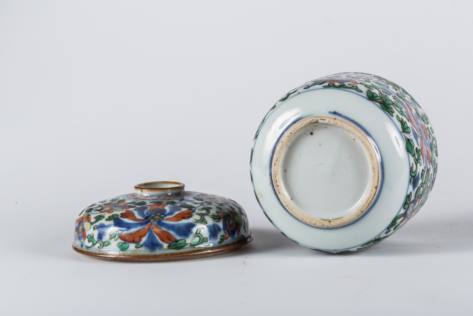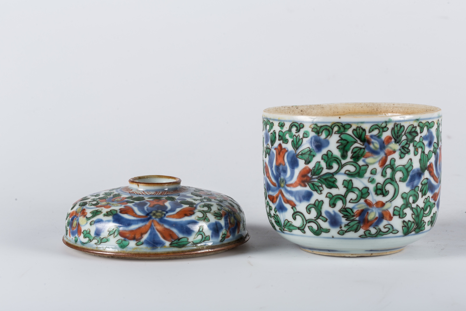 Arte Cinese A round wucai porcelain box and cover painted with flowers and spays