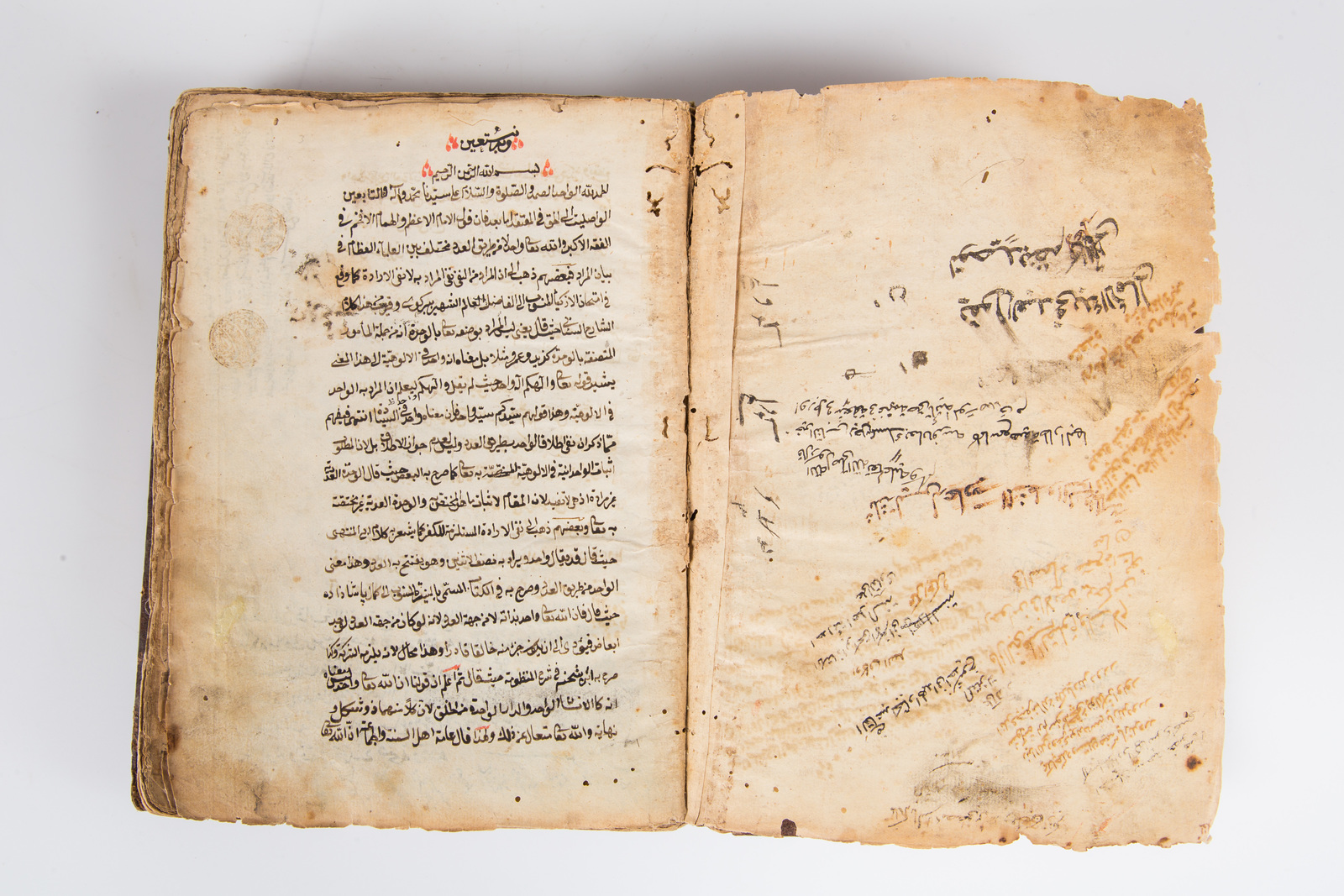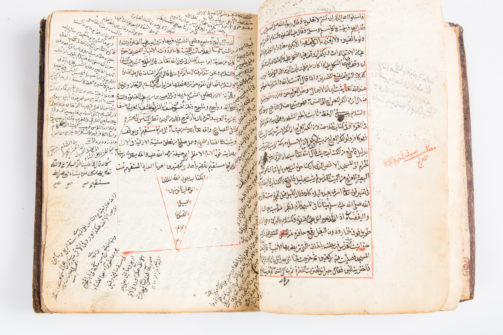 Nord Africa, tardo XVIII secolo . -. Cm 16,00 x 21,00. Manoscritto composto da 125 carte, completo. Dimensioni del foglio 205 X 146 mm, testo in calligrafia nashi su singola colonna, contaminato da alcune soluzioni in riq'a ottomano. Legatura in mezza elle con impressioni a secco, tracce di uso, aloni e tarli.