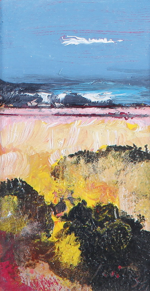 SERGIO SCATIZZI Gragnano (Lu) 20/12/1918 - Firenze 02/12/2009 Paesaggio olio su cartoncino cm. 17x9, firma in basso a destra, timbro e firma dell'artista al retro.