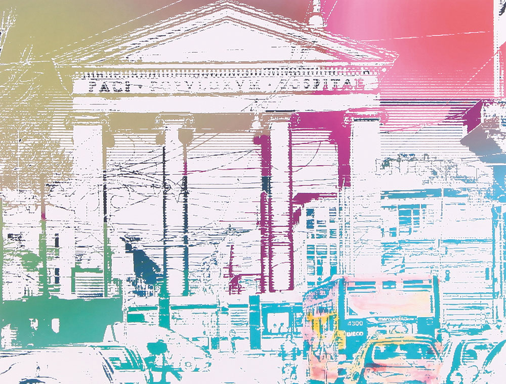 LEONIDA DE FILIPPI Milano 17/04/1969 Paesaggio urbano tecnica mista su carta cm. 30x40, firma, titolo e tecnica al retro, dichiarazione d'autenticità dell'artista su foto.