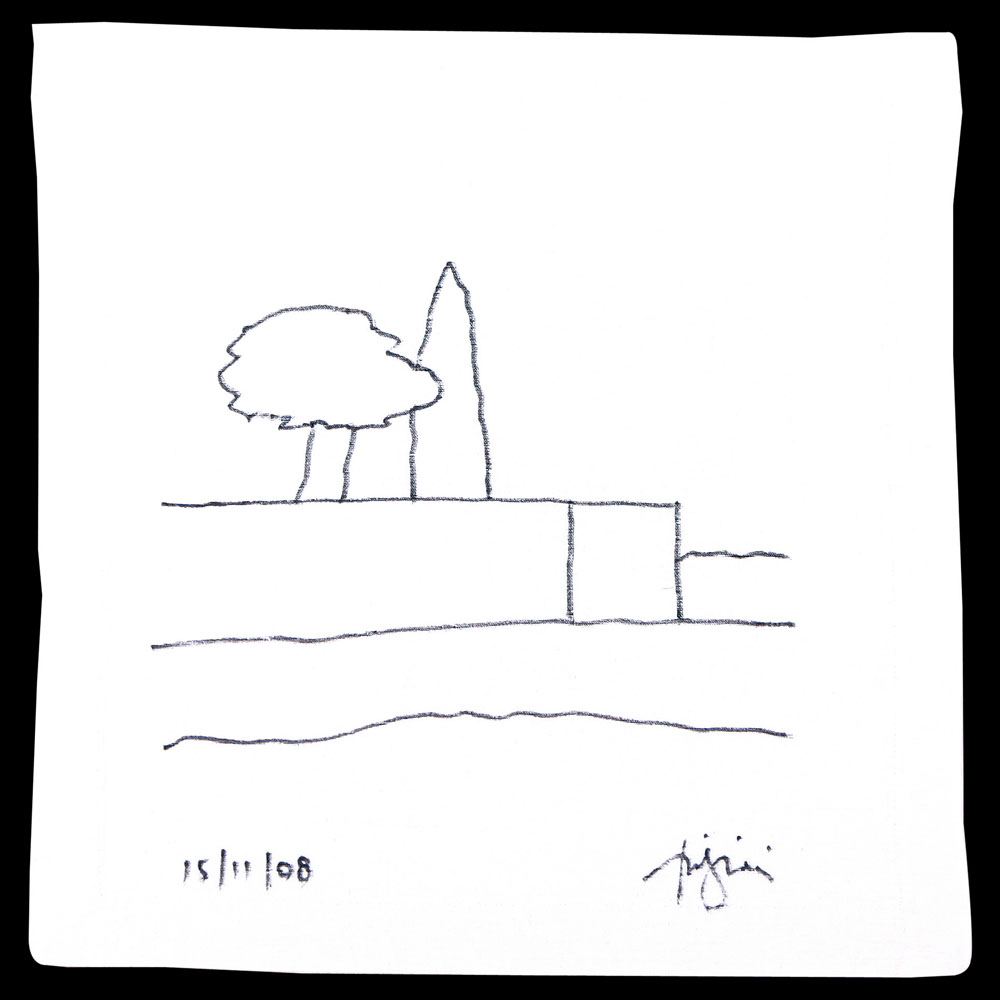 TINO STEFANONI Lecco (Co) 06/07/1937 Senza titolo, 2008 pennarello su stoffa cm. 45,5x44, firma in basso a destra, anno in basso a sinistra, timbro per provenienza della Armanda Gori Casa d'Arte su foto.