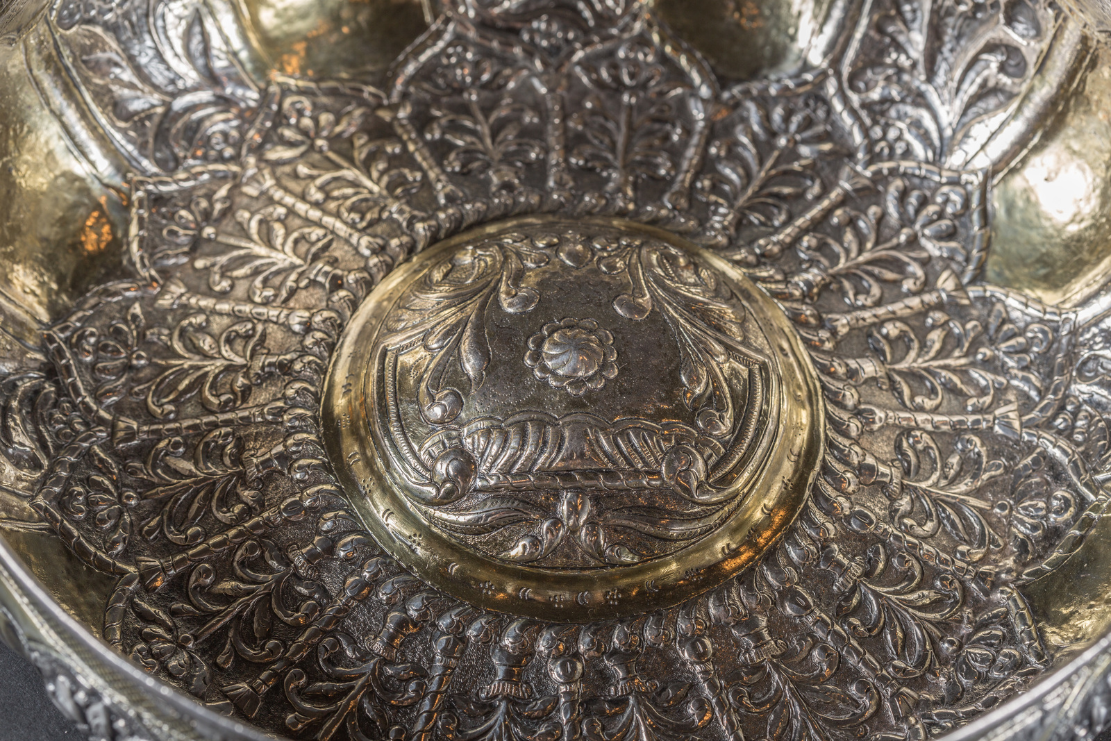 Islamic Art A parcel-gilt silver hammam bowl embossed with vegetal motifs