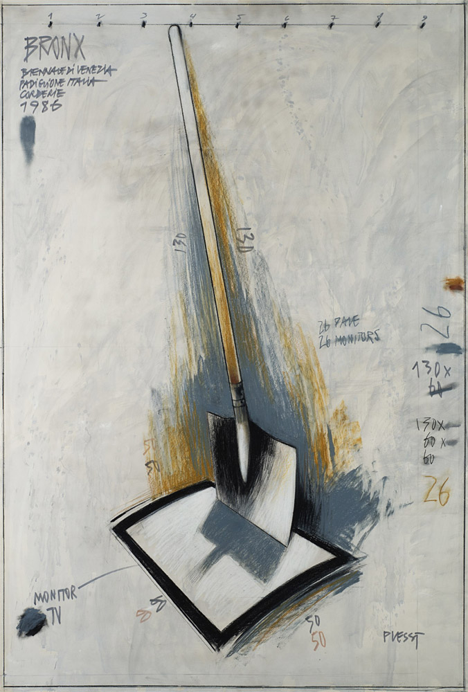 Fabrizio Plessi (Reggio Emilia 1940 )"Bronx" 1986 tecnica mista su...
