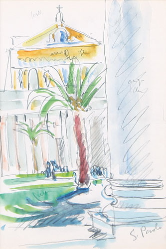ANSELMO BUCCI Fossombrone (Ps) 29/11/1887 - Monza (Mi) 15/11/1965 S. Paolo, (1950) acquerello e matita su carta cm. 23,5x16, opera non firmata, titolo in basso a destra.