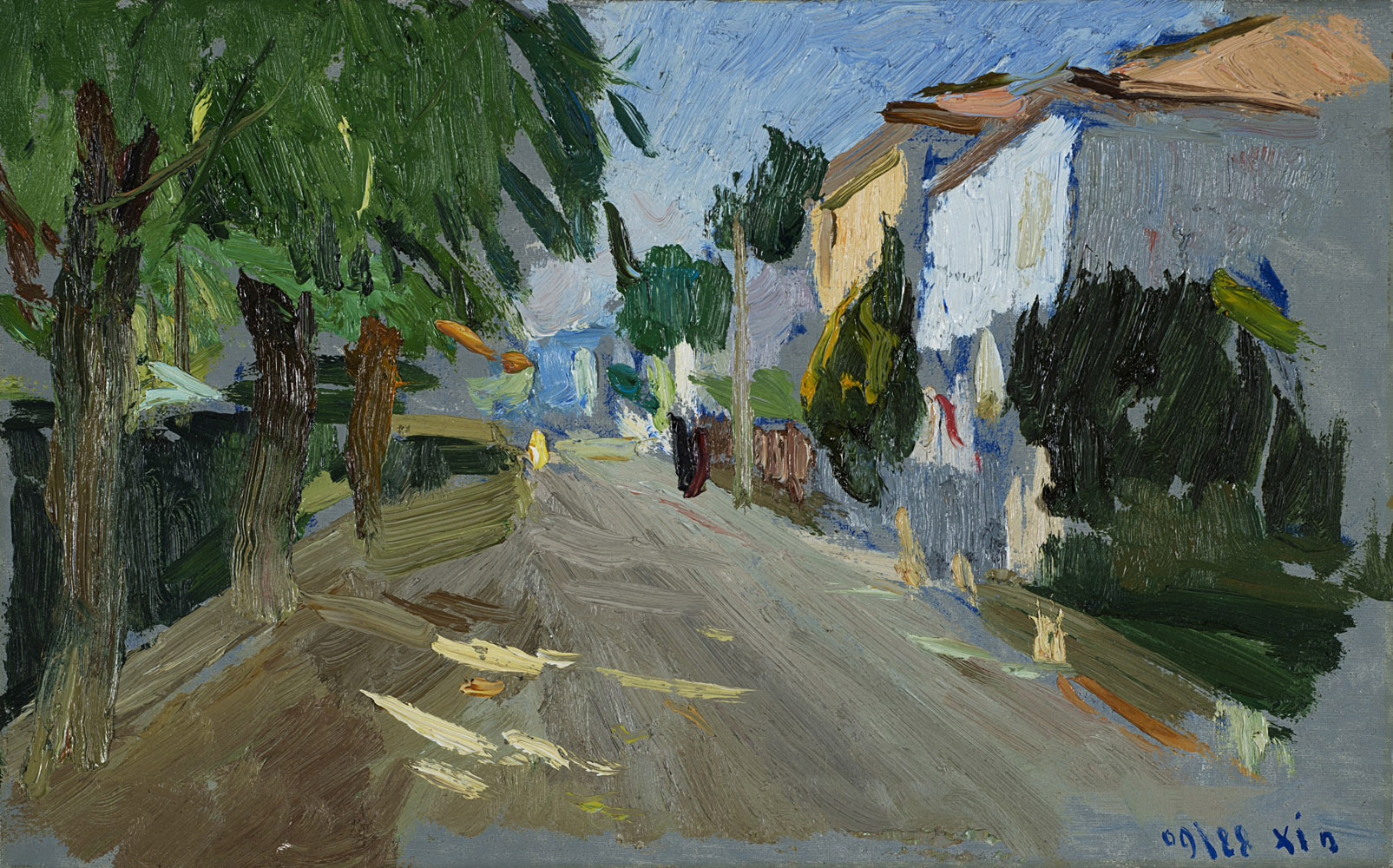 Chen Beixin (Beijing 1932 )"Paesaggio" 1988 olio su tela, cm 25x40...