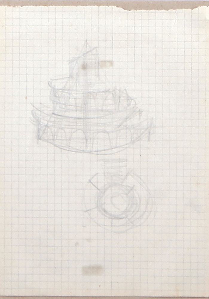 FORTUNATO DEPERO Fondo (Tn) 30/03/1892 - Rovereto (Tn) 29/09/1960 Studio d'architettura matita su carta quadrettata cm. 16,5x12, opera non firmata, dichiarazione d'autenticità con timbro dello Studio 53 Arte (Rovereto) su foto, già Asta Farsetti Arte (PO).