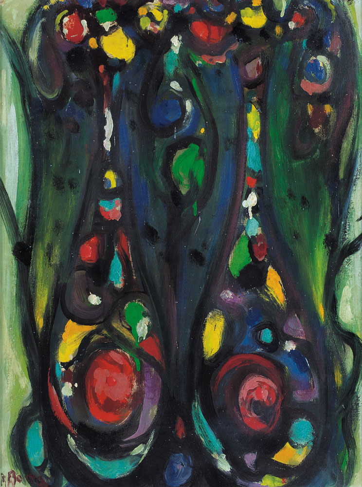 POMPEO BORRA Milano 28/01/1898 - Milano 05/11/1973 Senza titolo, 1966 olio su tela cm. 60x45, firma ed etichetta della Galleria d'Arte del Grattacielo (MI) al retro, opera registrata presso l'Archivio Fotografico Generale Pompeo Borra come da dichiarazione del nipote Filippo Borra su foto.