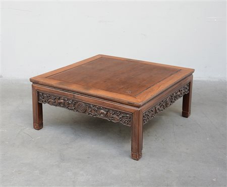 Arte orientale. Tavolino da salotto quadrato con fascia intagliata con...