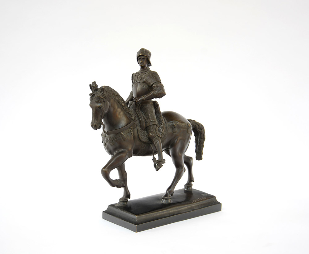 Veprecchio "Bartolomeo Colleoni a cavallo" scultura in bronzo firmata alla base (cm 40x35)