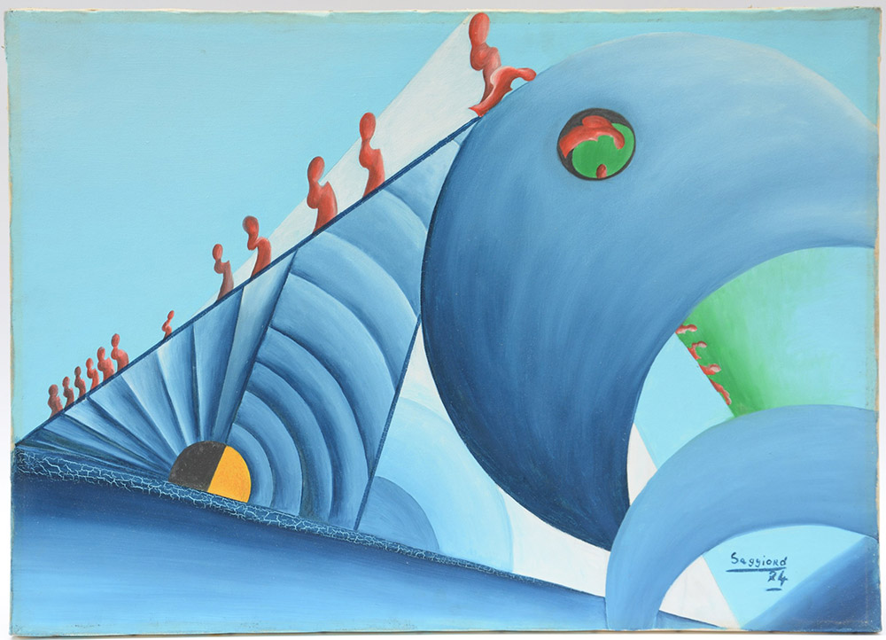 Saggioro "Senza titolo" olio su tela (cm 50x70) firmato in basso a destra e datato 1974