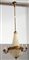 Lampadario a cesto a se luci con struttura in bronzo dorato e pendenti in vetro (h cm 150 circa)