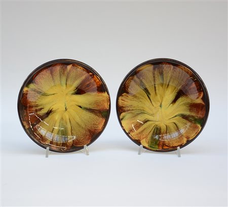 Coppia di piattini in ceramica decorata con striature gialle