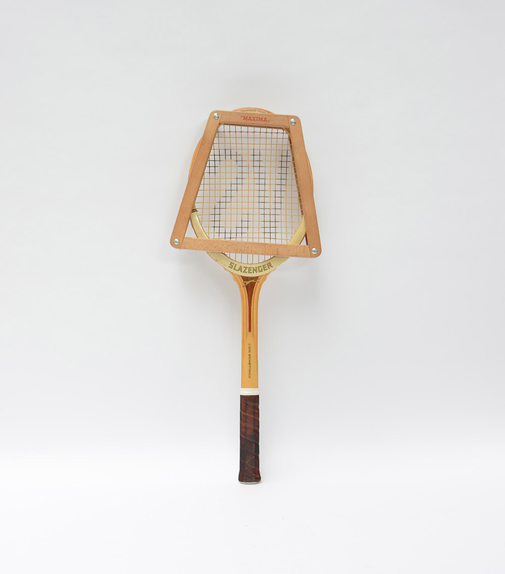 Racchetta da tennis marcata Slazenger, con supporto di fissaggio, anni '60 (difetti)