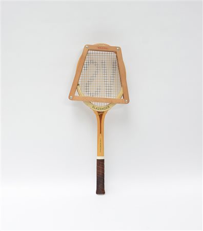 Racchetta da tennis marcata Slazenger, con supporto di fissaggio, anni '60...