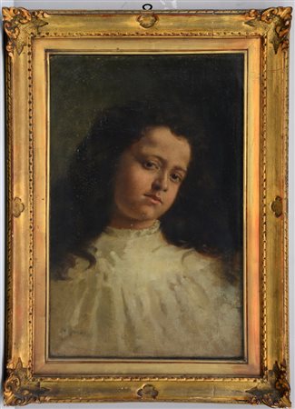 Napoleone Luigi Grady Santa Cristina 1860 Brusimpiano 1949 "Ritratto di bambina in abito bianco" olio su tela (cm 54x35) Firmato a matita in basso a sinistra. In cornice (difetti)