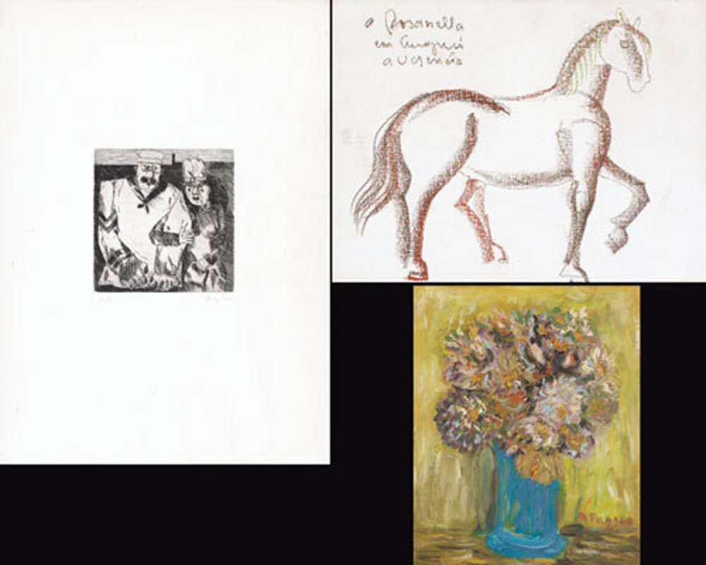 AUTORI VARI FRANZ BORGHESE Senza titolo acquaforte su carta cm. 50x35, esemplare P.A., firma in basso a destra. PITTORE DEL XX SECOLO Senza titolo olio su tela cm. 30x24, reca la firma Poggio in basso a destra. PITTORE DEL XX SECOLO Senza titolo tecnica mista su cartone telato cm.30x40, reca una dedica in alto a sinistra.