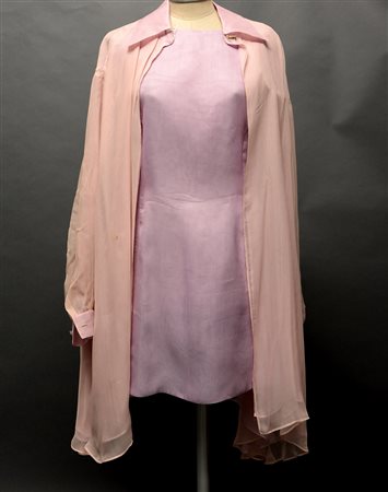 MONTANA Vestito smanicato in organza con spolverino in chiffon nelle nuances del rosa pallido (difetti e macchie) (tg 38/40)