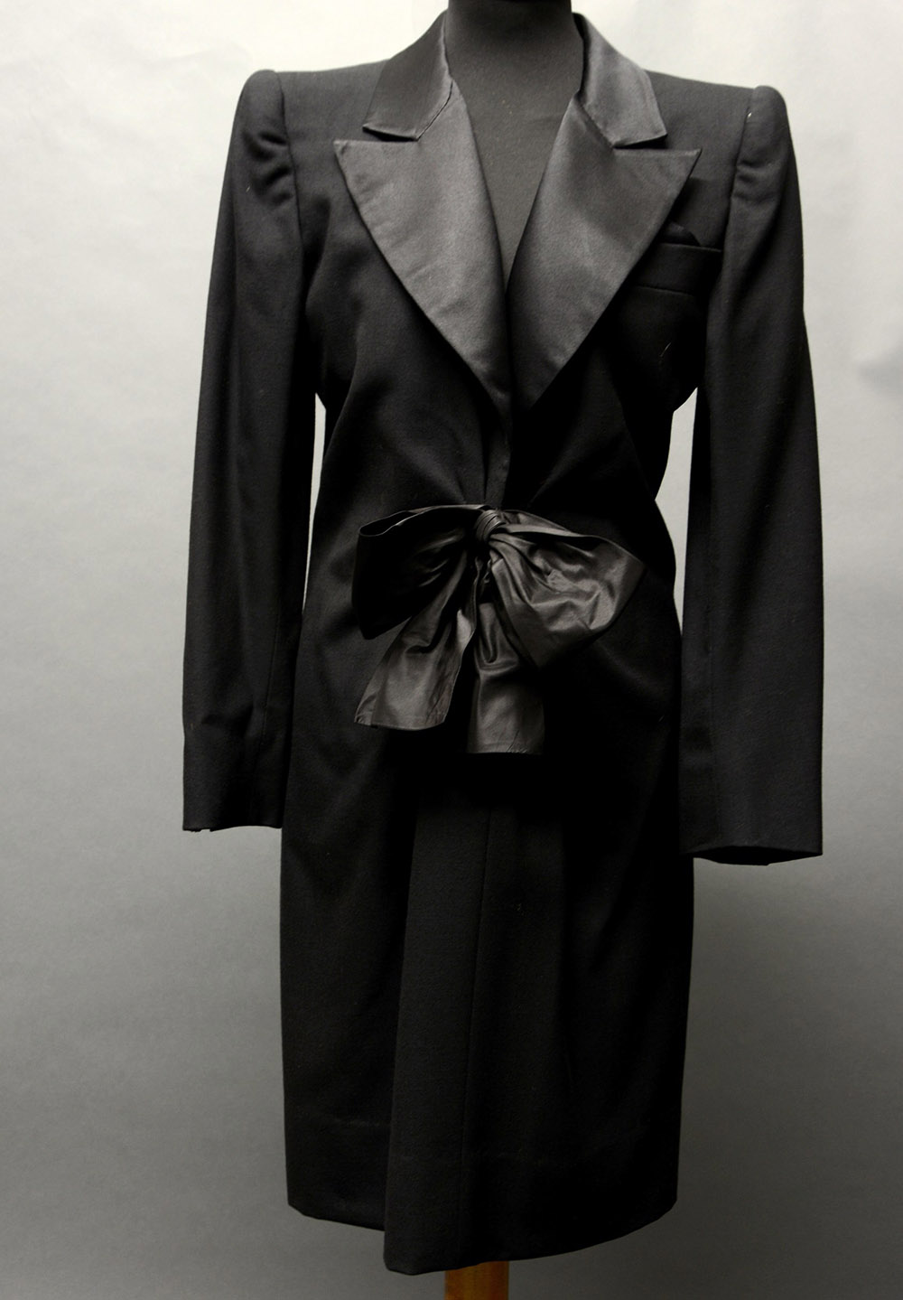 R.FERRARI Abito "smoking" nero in lanetta con revers in raso di seta (tg 38/40)