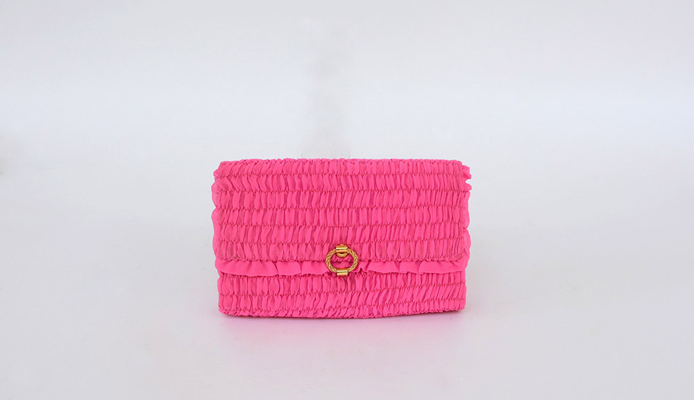 GUCCI, FIRENZE Borsetta da sera in chiffon goffrato color ciclamino, chiusura in metallo color oro (cm 19)(difetti, segni d'uso)