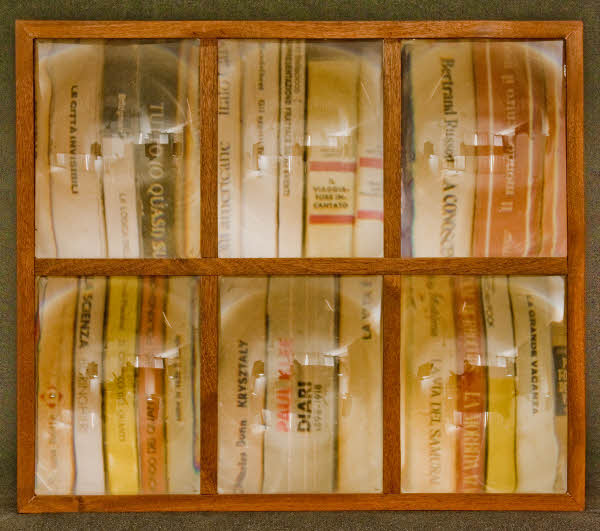 Maurizio Colantuoni - Quanto epocale - 1992 cassetta in legno, libri e lenti cm. 58x67x23 Firma sul retro. Autentica dell’artista. Provenienza Galleria Lia Rumma, Napoli