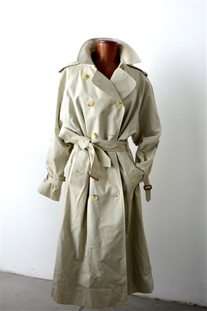 Impermeabile con abbottonatura a sinistra color burro con la classica fodera Burberry scozzese (tg 52/54) (lievi difetti)