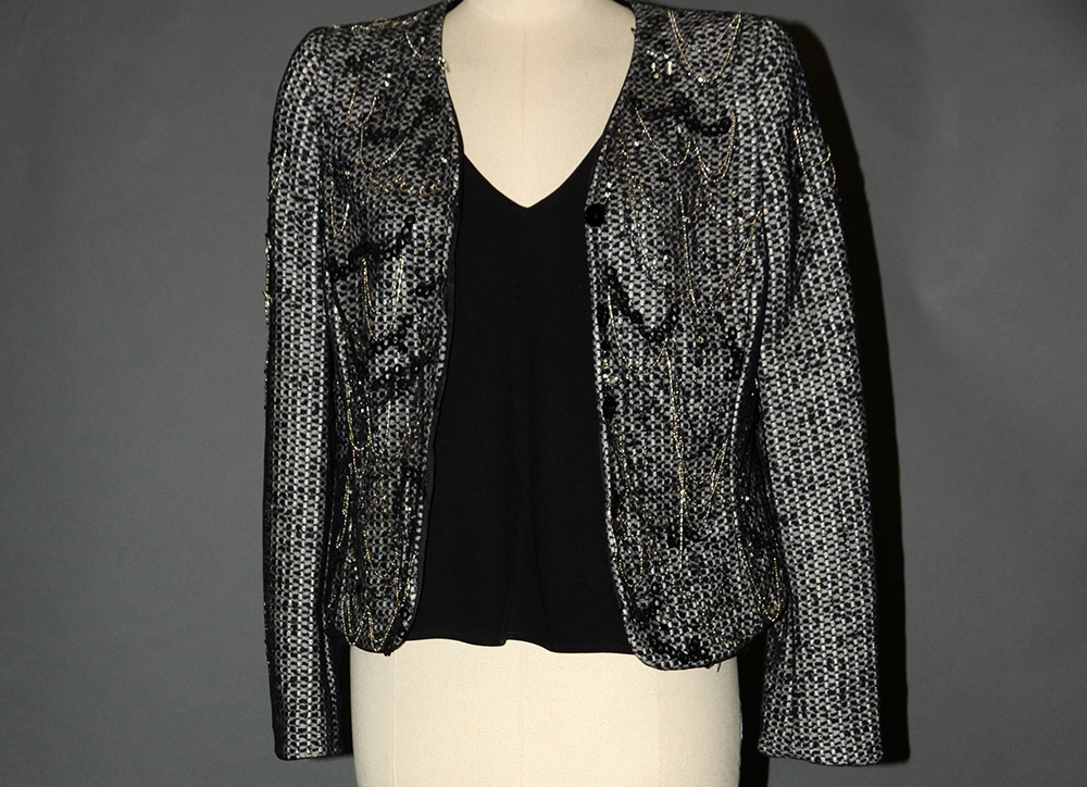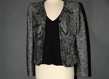 ARMANI COLLEZIONI Lotto composto da una giacca in lana e tulle decorata con motivo di catene e strass unita ad un top smanicato color nero (tg 42)