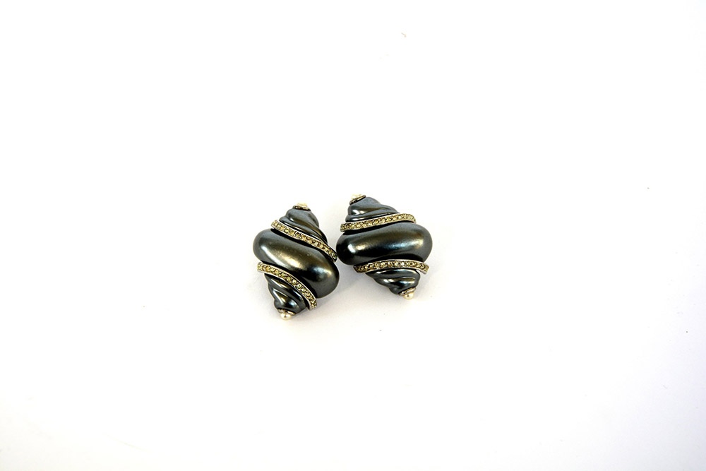 KENNETH LANE Orecchini a clips a forma di conchiglia grigio perla