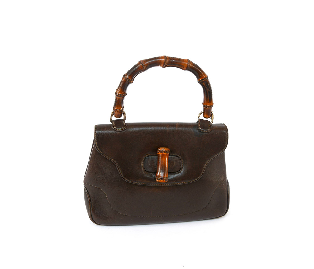GUCCI, FIRENZE "Bambù" borsa in pelle testa di moro, cm 26,50 (difetti e segni d'uso)