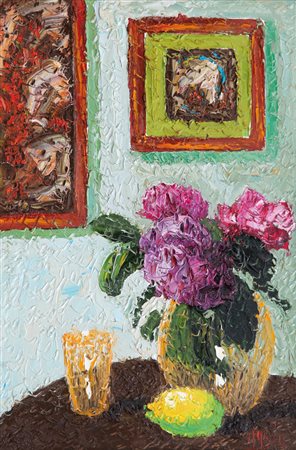 ROBERTO MASIA Iglesias (Ca) 20/02/1958 Interno con natura floreale olio su...