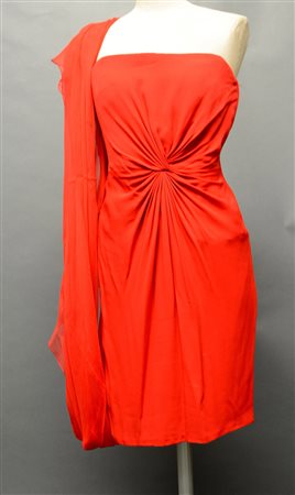 VALENTINO Vestito smanicato in chiffon rosso, stola abbinata (tg 38/40)