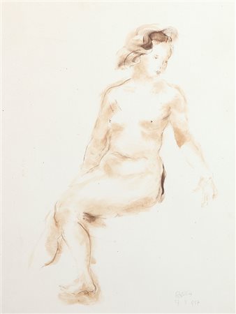 GIAN PIETRO RESTELLINI MONZA 1895 - 1973 Nudo seduto, 1957 china acquerellata su carta cm. 43x32,5; firma e anno in basso a destra.