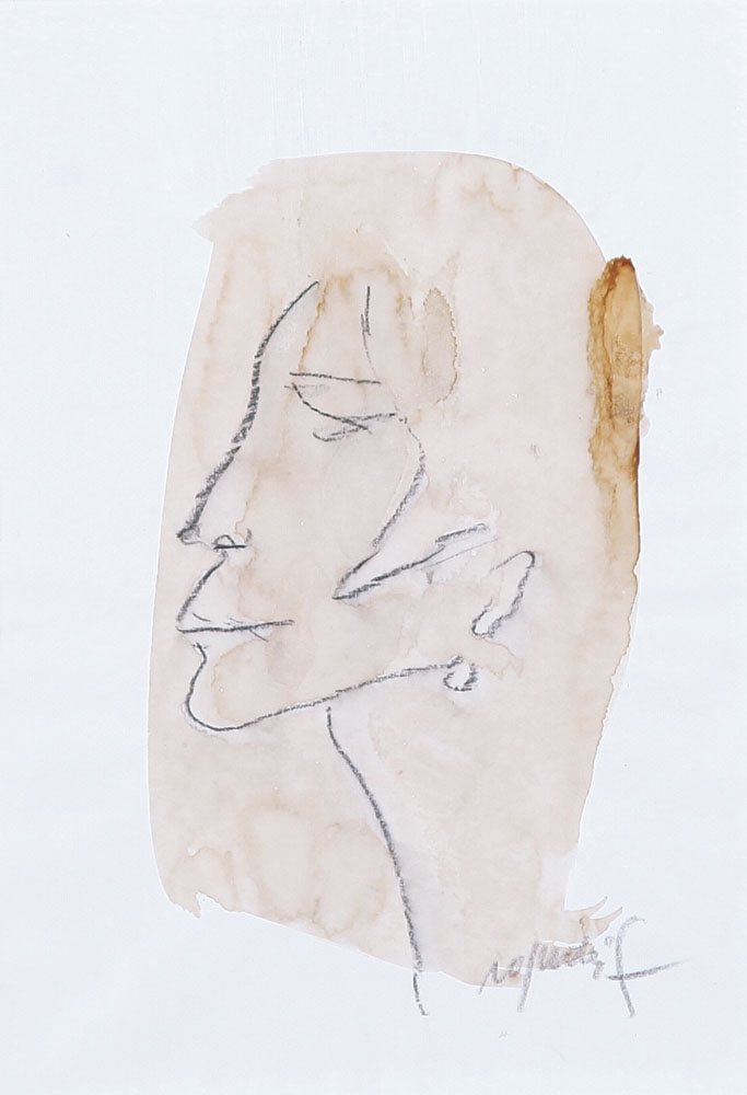 FRANCO ROGNONI Milano 20/09/1913 - Milano 11/03/1999 Profilo tecnica mista su carta intelata cm. 30x20, firma in basso a destra, dichiarazione d'autenticità dell'artista su foto.