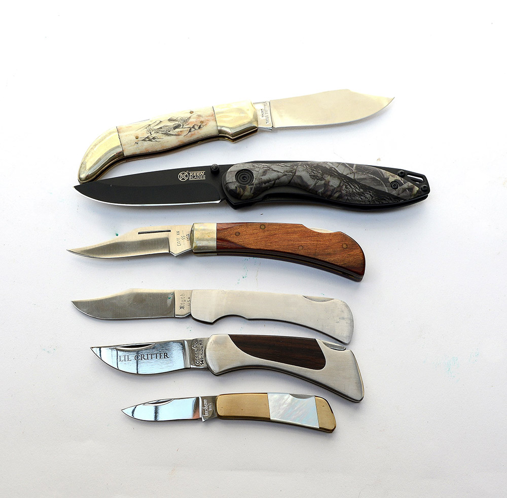 (Historica) Lotto composto da sei coltelli pieghevoli. In custodia originale.