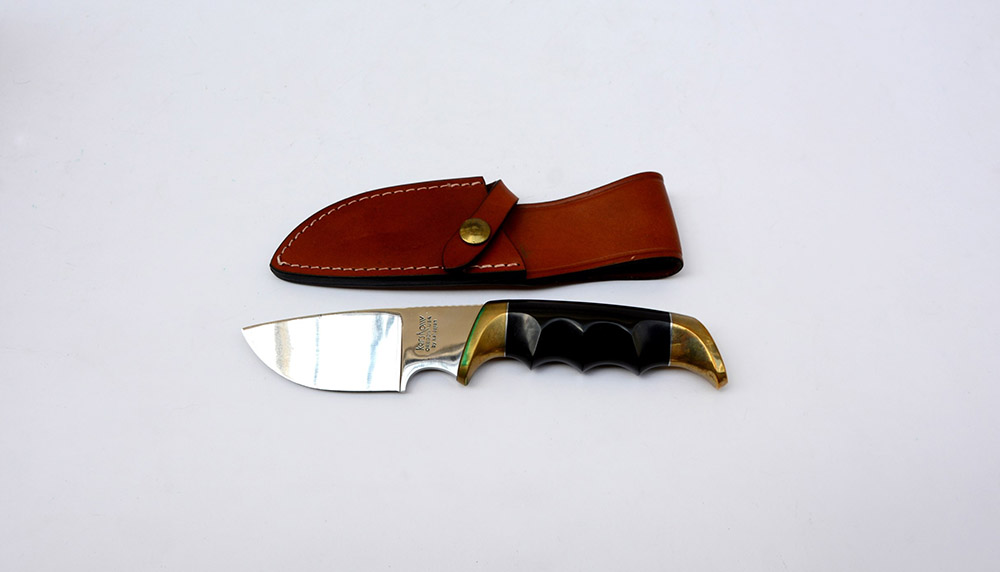 (Historica) Coltello da caccia con custodia, marca Kershaw by Kai (USA). In confezione originale.