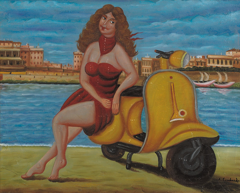 SALVO LOMBARDO Favara (Ag) 1948 A Ortigia olio su tela cm. 40x50, firma in basso a destra, timbro dell'artista con titolo, firma e archivio numero 456H574 al retro sul telaio, dichiarazione d'autenticità dell'artista su foto.