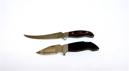 (Historica) Lotto composto da due coltelli con lame giapponesi di cui uno da caccia ed uno pieghevole entrambe con custodia, marca Lakota (USA). In confezione originale.