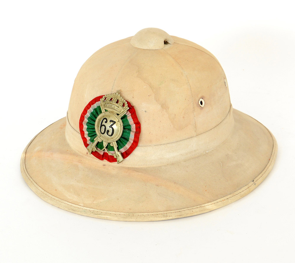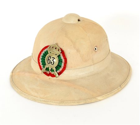 Casco coloniale in tela bianca, 63° Reggimento di fanteria. Regno d'Italia,...