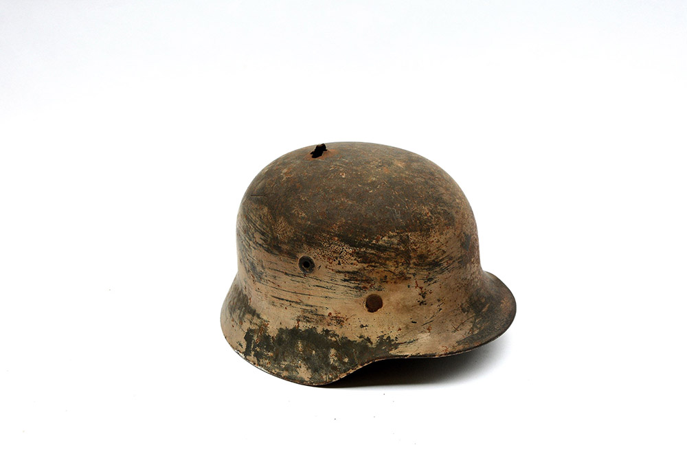 Elmetto modello 42 Wehrmacht, con tracce di vernice cachi, utilizzato nella campagna d'Africa, Germania. Stato di conservazione non buono