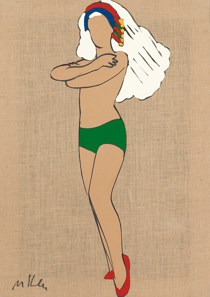 MARCO LODOLA Dorno (Pv) 04/04/1955 Pin-up smalti e collage su tela grezza cm. 100x70, firma in basso a sinistra, dichiarazione d'autenticità dell'artista su foto, opera senza cornice.