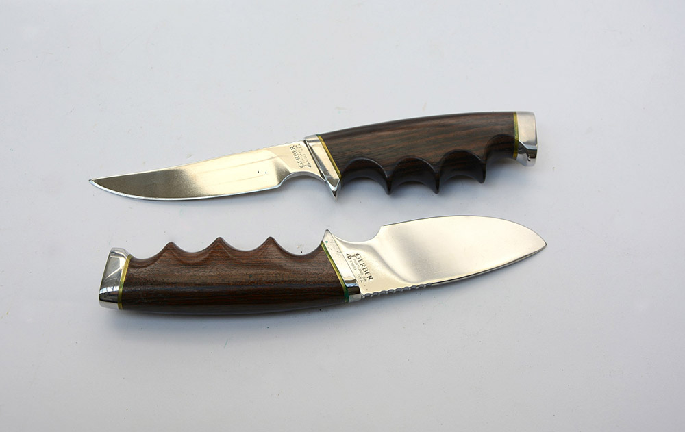 (Historica) Lotto di due coltelli da caccia con custodia, marca Gerber (USA). In confezione originale.