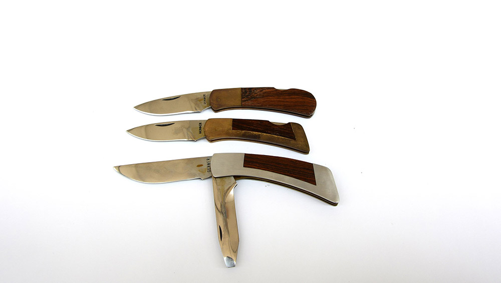 (Historica) Lotto comporto da tre coltelli pieghevoli, marca Gerber (USA). In confezione originale.